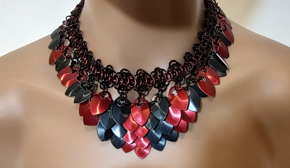 I made this choker using black and red anodized aluminum so it's very lightweight and will no tarnish. I can make this choker in other colors as well, but please message me first. Black and red is ready to ship.