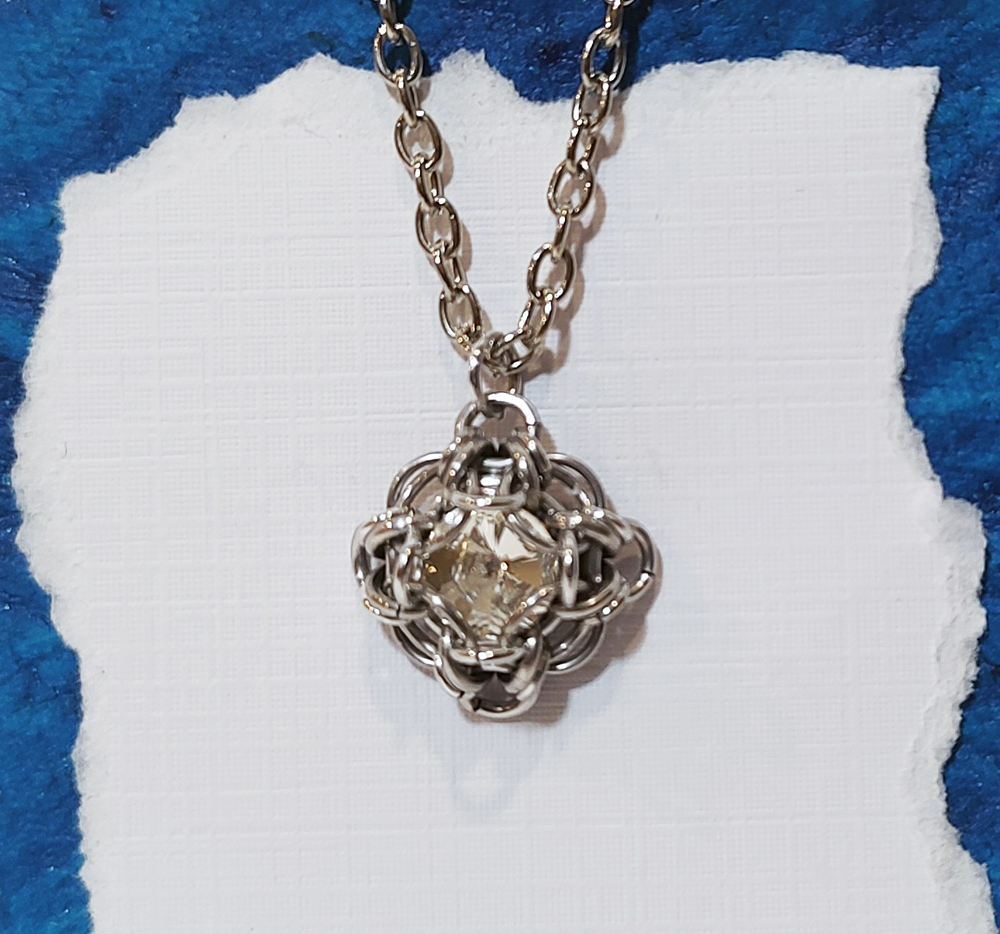 For those who like small pendants. This labyrinth pendant is made using aluminum so it weight practically nothing. 3/4 of an inch in length. The flash of color in the center is just gorgeous. 7 colors to choose from. White, light blue, blue, red, rose, lavender, multicolor pink/green/yellow.